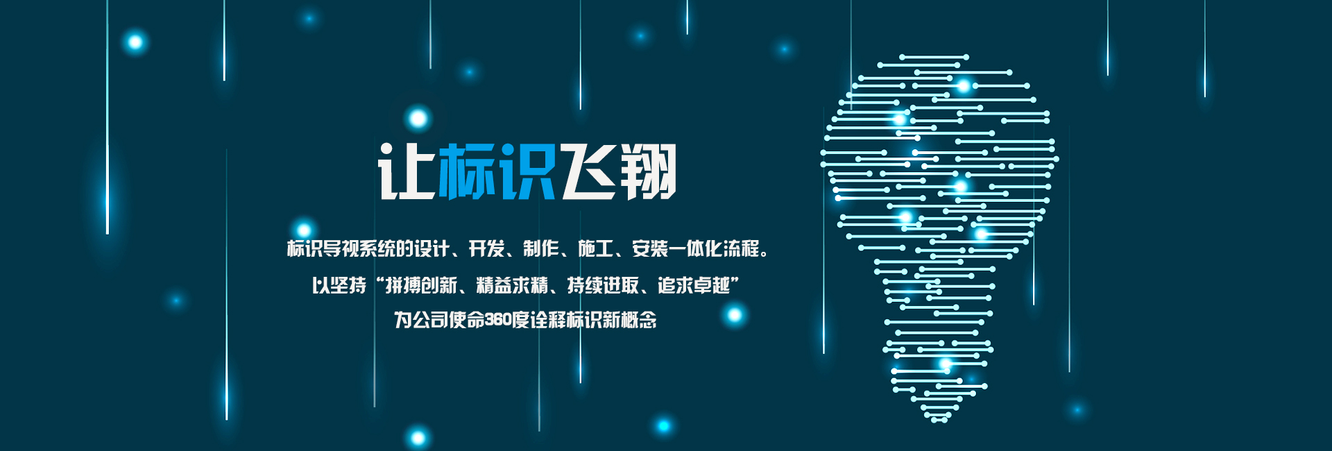 青島藍立方標識系統有限公司自成立以來主要從事標識系統規(guī)劃、停車場交通設施的設計,制作,安裝,亮化工程的廠家,以堅持“拼搏創(chuàng)新、精益求精、持續(xù)進取、追求卓越”為公司使命360度詮釋標識新概念, 從調研區域環(huán)境、建筑特征入手,規(guī)劃設計與之相配套的標識系統、交通設施工程。在生產中,我們嚴格把控每一道流程工藝,精心制作、安裝,營造與 環(huán)境和諧的視覺效果,體現城市管理者及發(fā)展商的經營理念,樹立城市及區域環(huán)境的良好形象,提升城市競爭力及物業價值,增強市民及 業主的自豪感和歸屬感。經過多年的不懈努力,我們逐步發(fā)展成了一支資質雄厚、技術過硬、售后服務完善的專業化團隊。我們始終在不 斷的創(chuàng)新,為客戶提供優(yōu)質的服務。公司主要負責房地產系統、辦公樓宇、商業系統、教育機構、醫(yī)療系統、旅游景區、城市觀景、地下停車場等方面的標識導視系統的設計、開發(fā)、制作、施工、安裝一體化流程。